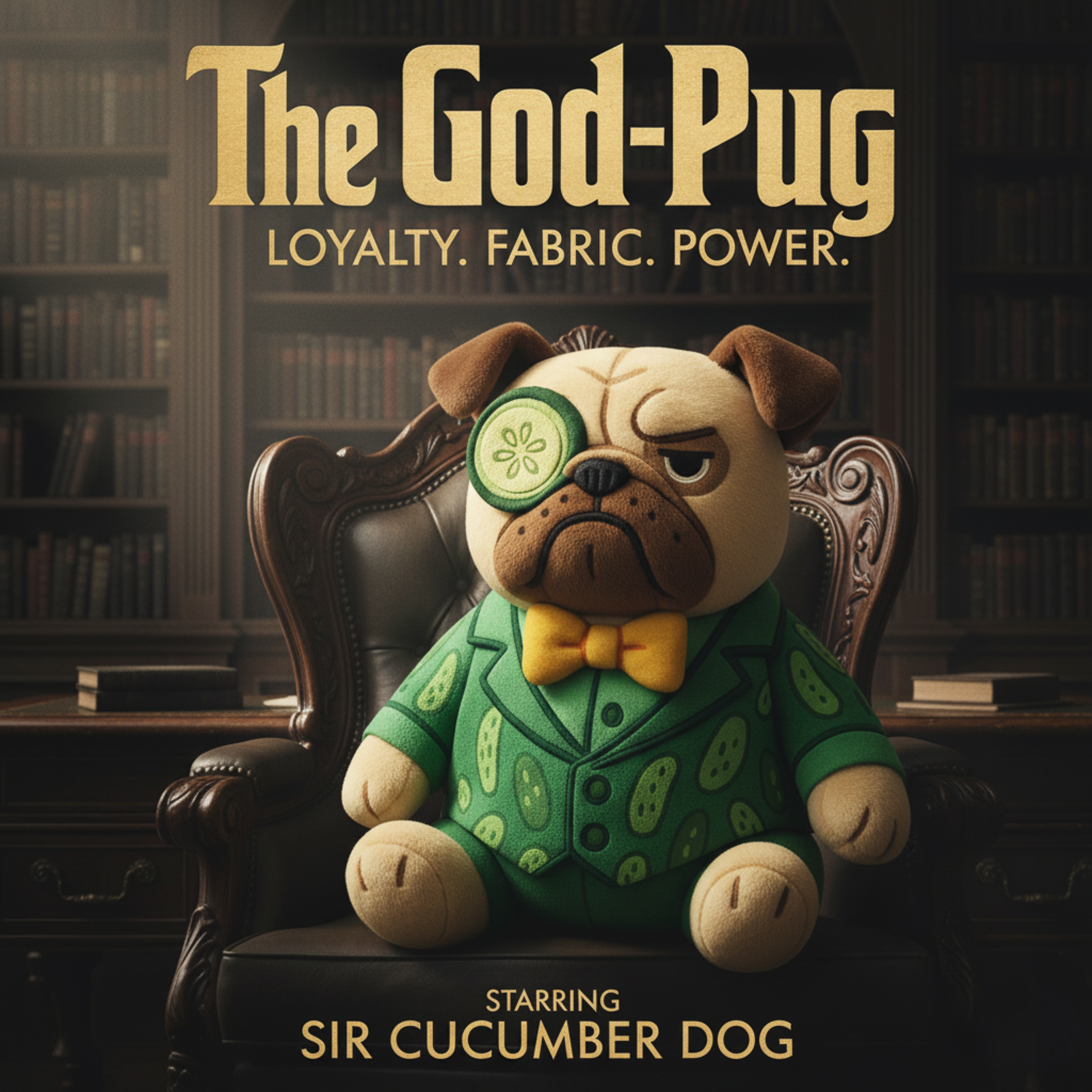 Sir Cucumber Dog—the plush pug in the cucumber-print suit—is hiding a secret reward somewhere on this page. He's a terrible guard, but he loves a game.