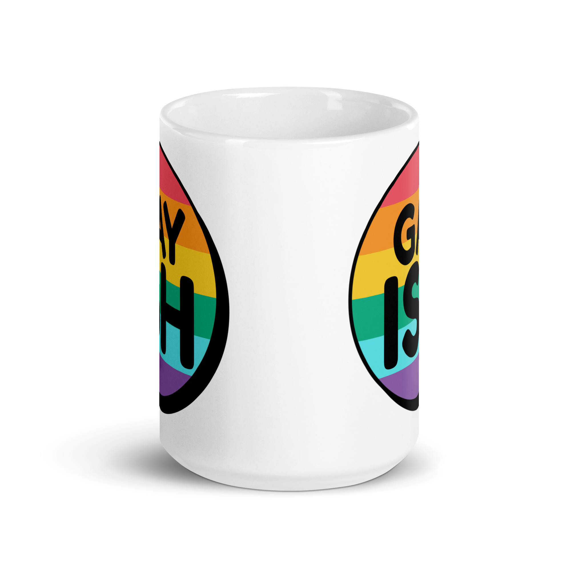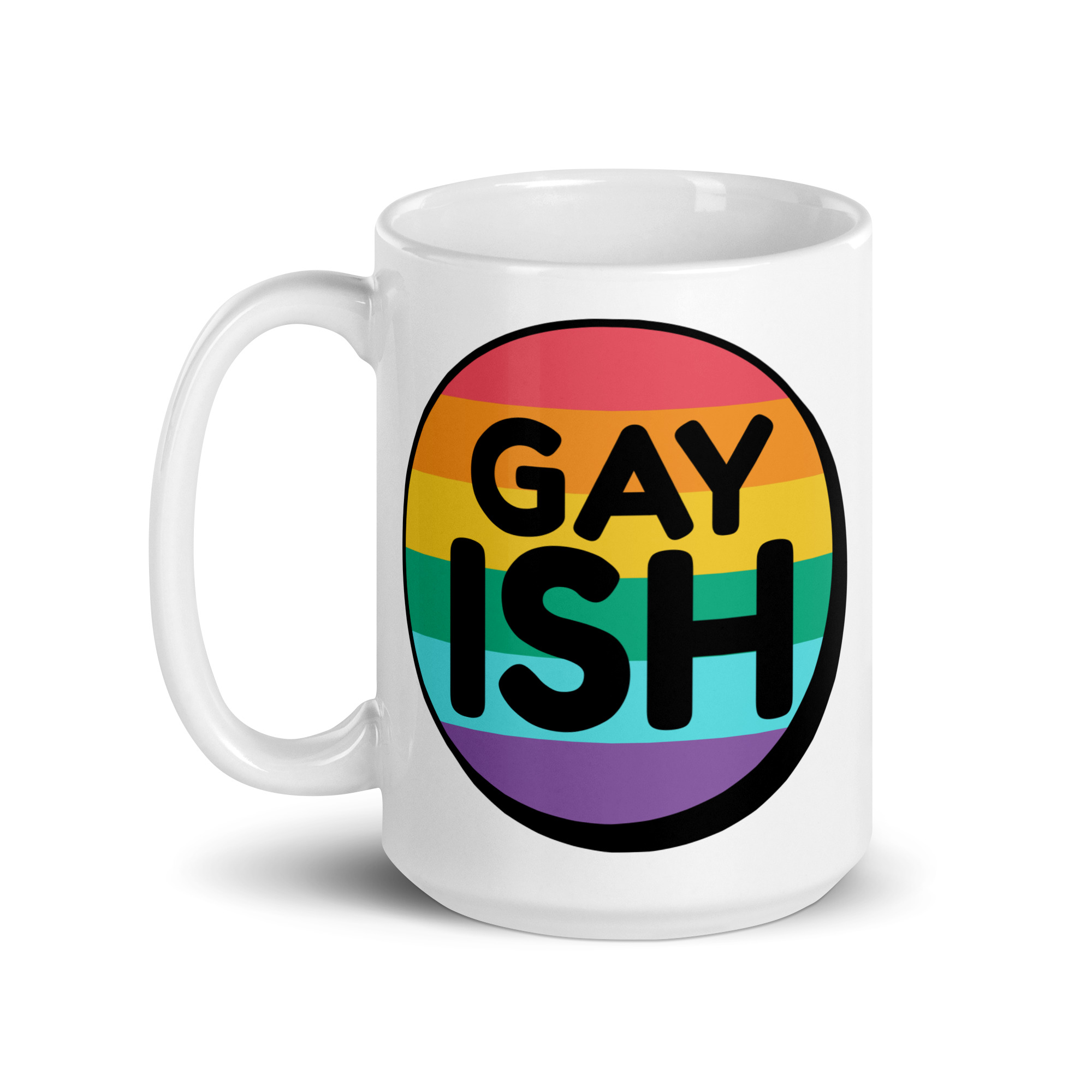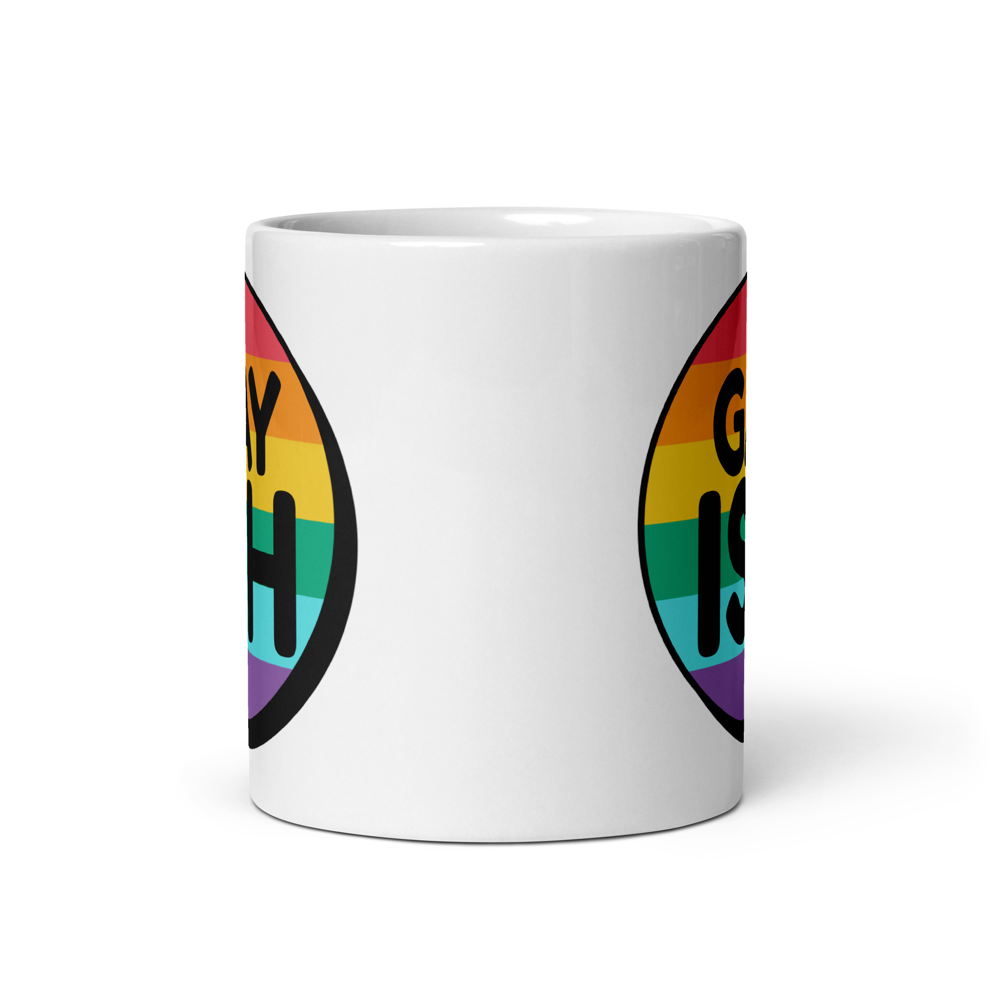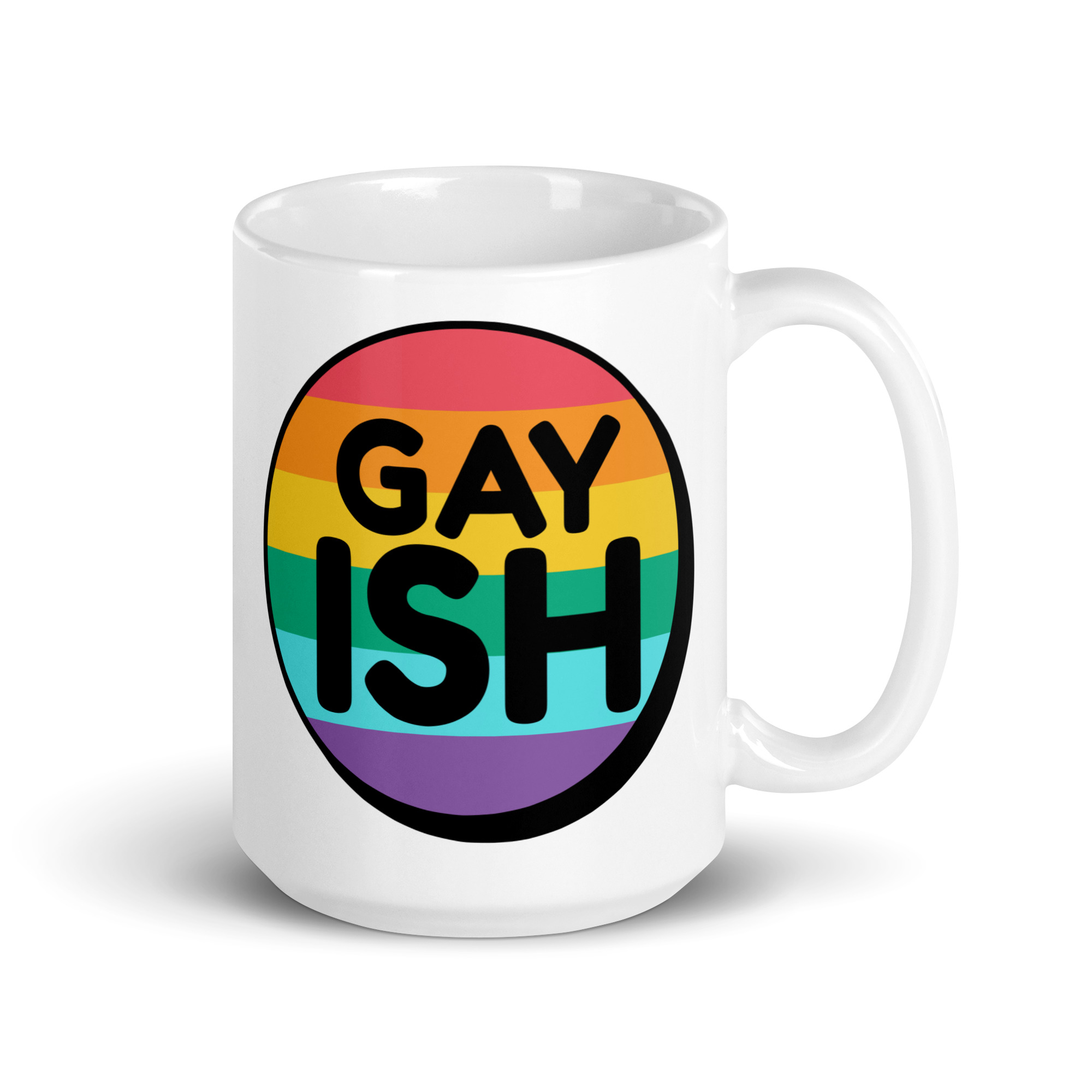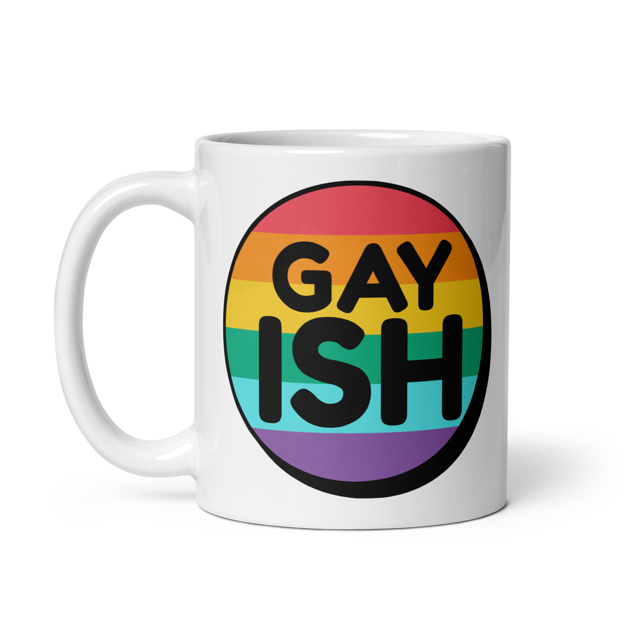 Loud? Proud? Or just a little bit Gay-ish? This glossy white mug says it all without you having to explain a damn thing. Featuring the word “Gay” in bold, unapologetic text and a giant “Ish” splashed across a circular pride flag, it’s the perfect blend of sass and rainbow power.