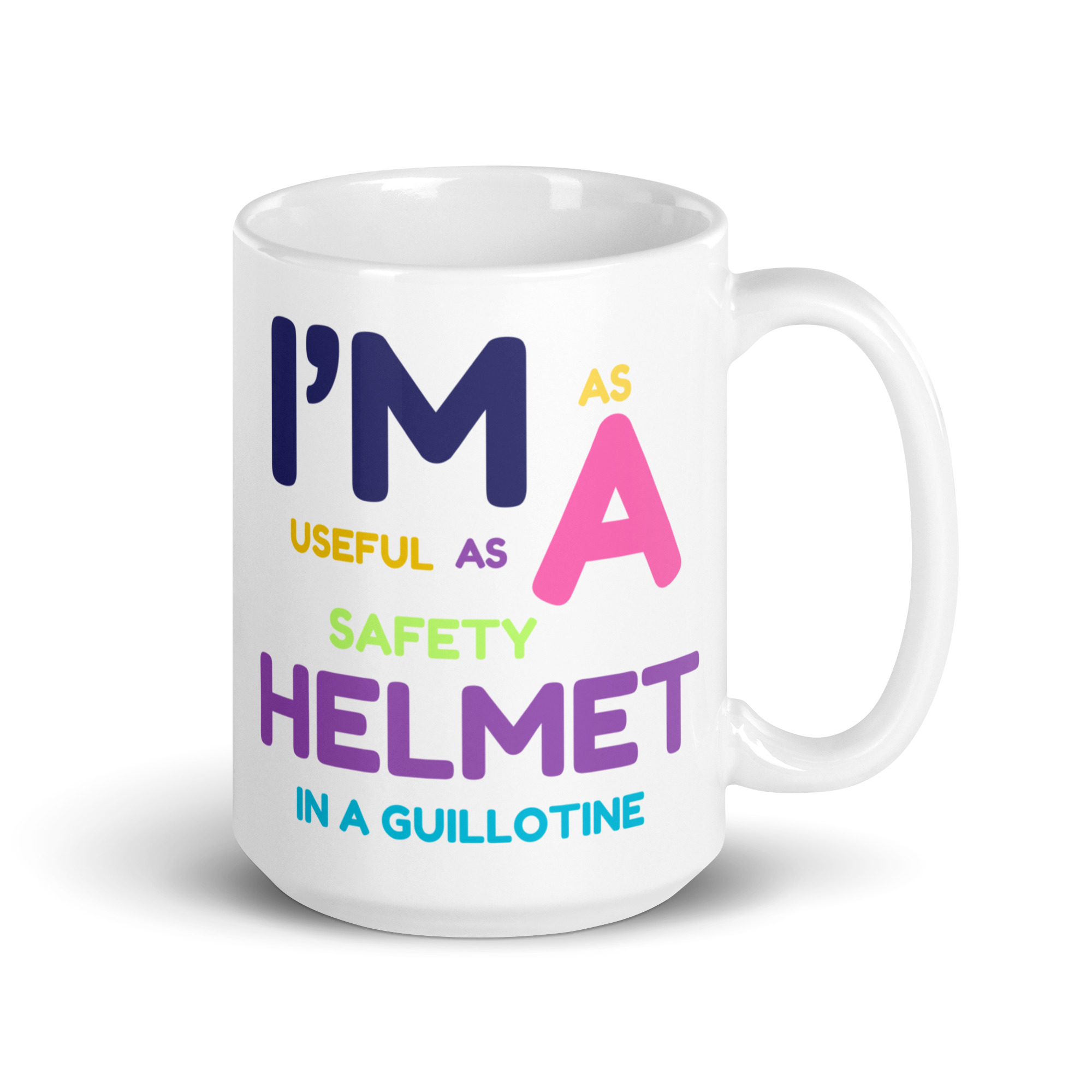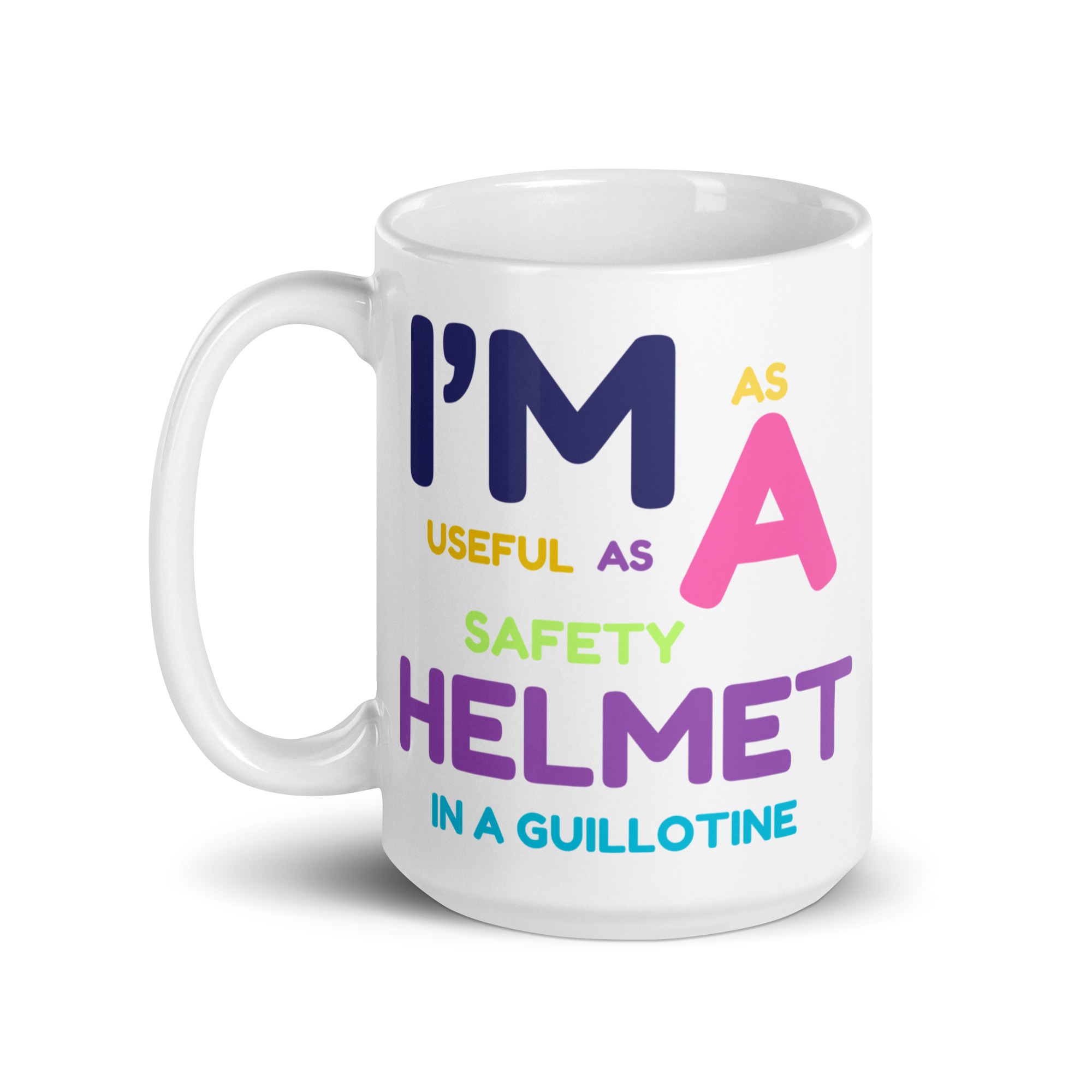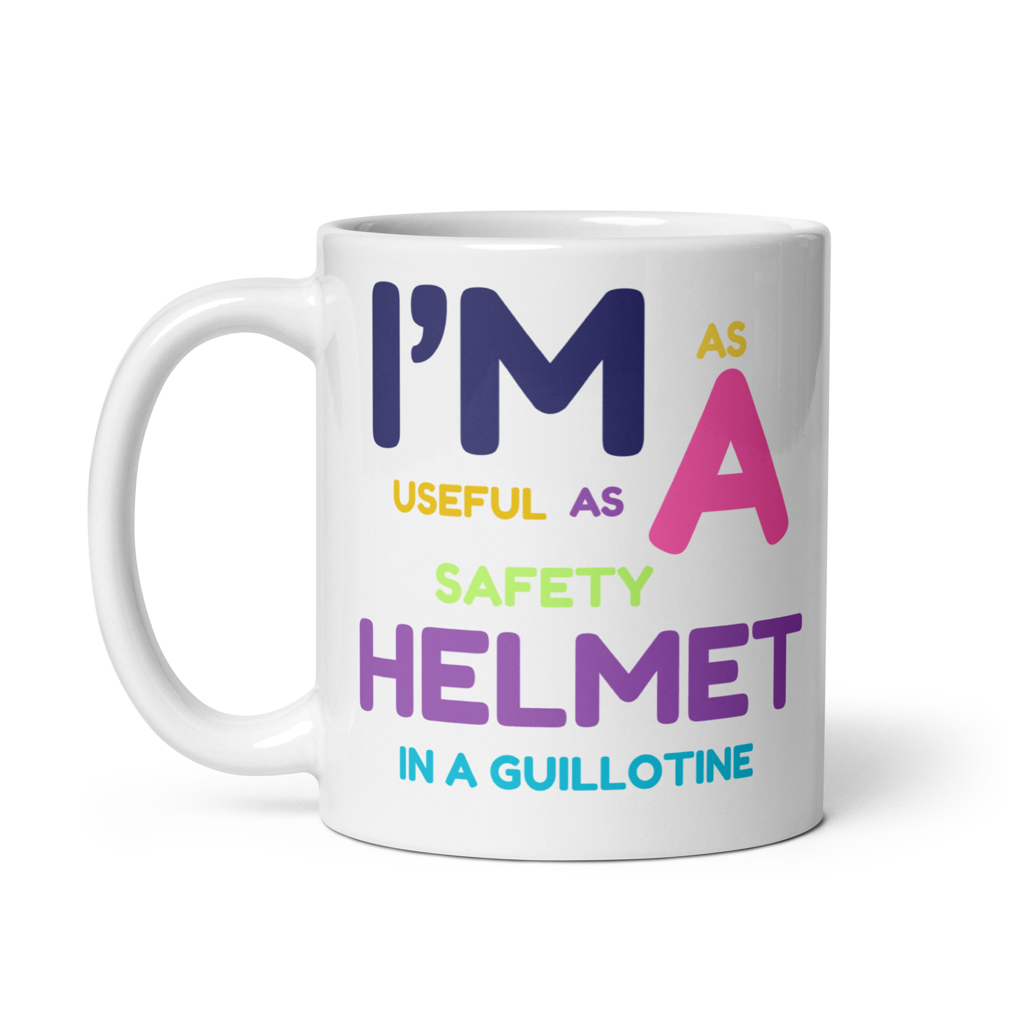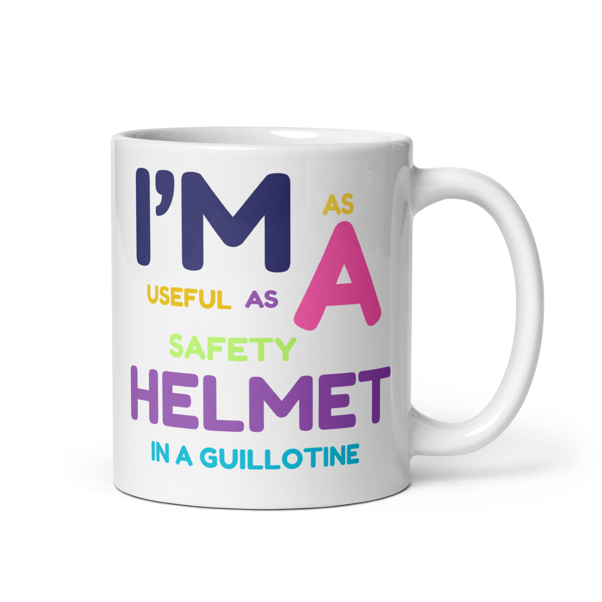 Be the first to review “I’m As Useful As A Safety Helmet In A Guillotine White Glossy Mug”